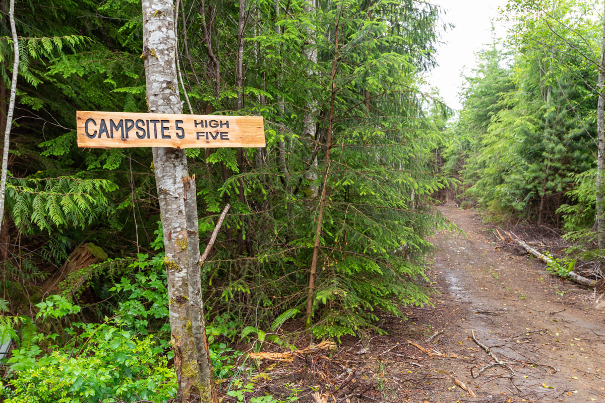Follow the signs for “Campsites 1-20” and then “Campsite 5 High-Five”, it is 1.5km from the main entrance.